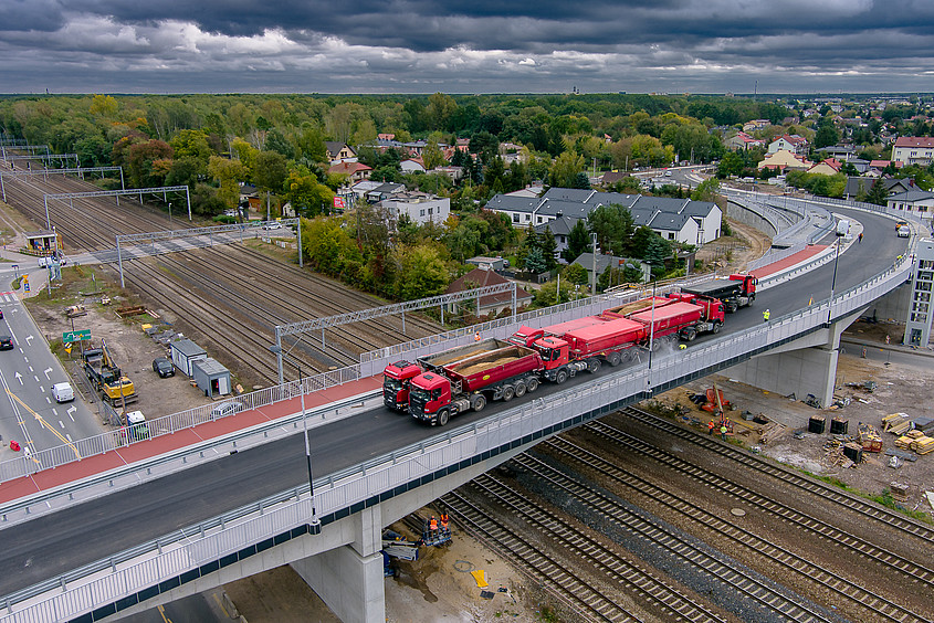 Na budowanym w Rembertowie wiadukcie, który przebiegać będzie nad ulicami Chłopickiego i Strażacką oraz linią kolejową, przeprowadzono próby obciążeniowe. Testy statyczne i dynamiczne polegały na obciążeniu obiektu i sprawdzeniu, jak zachowa się konstrukcja. Po ułożeniu ostatniej, ścieralnej warstwy nawierzchni, to kolejny krok do zakończenia inwestycji, która ma być gotowa do końca bieżącego roku.