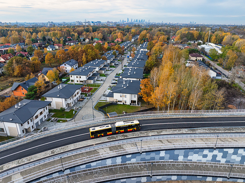 Na czterech potężnych podporach powstała konstrukcja z jezdnią, chodnikami oraz drogą rowerową. Przy wiadukcie wybudowane zostały także pochylnie, schody i windy dla osób z niepełnosprawnościami – ich uruchomienie nastąpi w najbliższych tygodniach. Na północnym dojeździe pojawiły się zatoki autobusowe z przystankami, a kierowcy korzystają już z nowego ronda na ul. Chełmżyńskiej, które powstało w ramach tej inwestycji. Do końca roku potrwają jeszcze ostatnie prace, w tym m.in. nasadzenia zieleni: 257 drzew, blisko 1650 krzewów oraz zakładanie trawników.